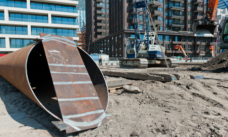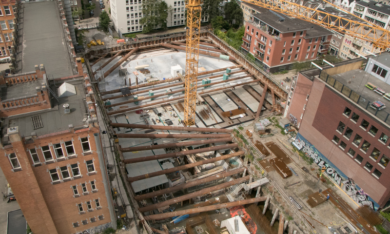 Dit alles zorgt ervoor dat het stempelframe dat nodig is om een bouwkuip tot grotere diepte te kunnen ontgraven ook “ in het werk” wordt gemaakt. Nog niet zo lang geleden, was dit de normale gang van zaken.